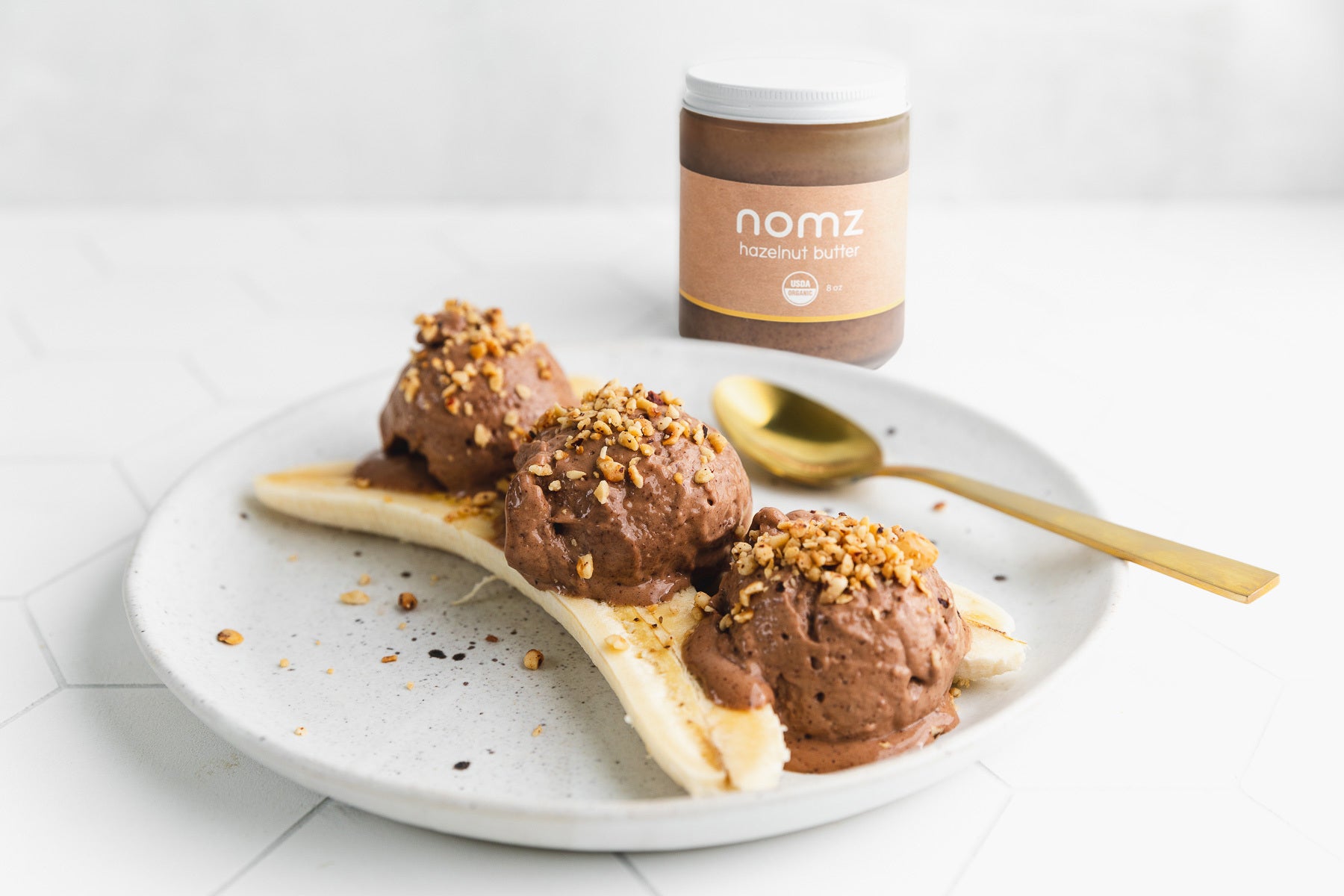 By adding in our single ingredient organic hazelnut butter – it becomes a tasty snack loaded with nutritious healthy fats! Loved by vegans and non-vegans alike – this healthy vegan banana split will not disappoint!