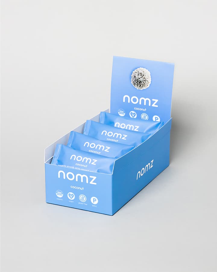 Ideal for hangry kiddos and toddlers, a pre-workout snack, your afternoon pick me up or snacking on the go. Each serving of nomz organic bites is packed with hunger-crushing healthy fats, fiber, and protein.