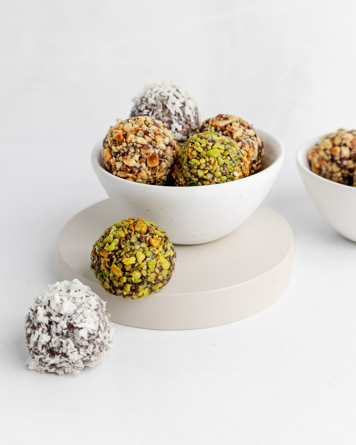 pistachio bites: almonds, dates, fair trade cocoa, pistachio, sea salt