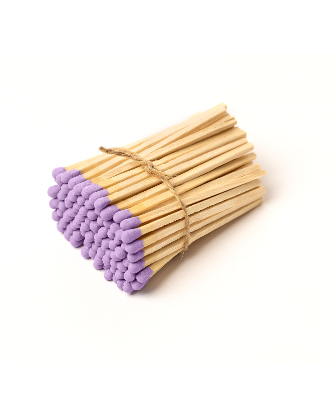 with tall wooden matches and lilac tips, these matches add sophistication in any living space